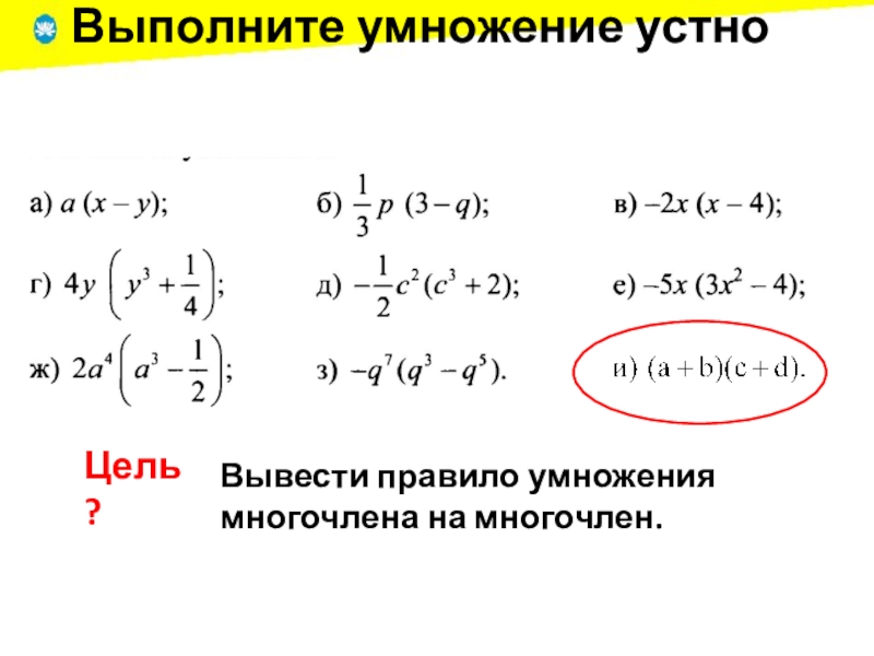 Выполните умножение устноЦель?Вывести правило умножения многочлена на многочлен.