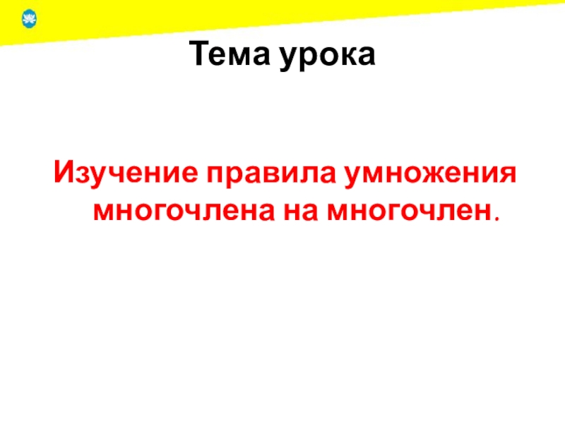 Тема урокаИзучение правила умножения многочлена на многочлен.