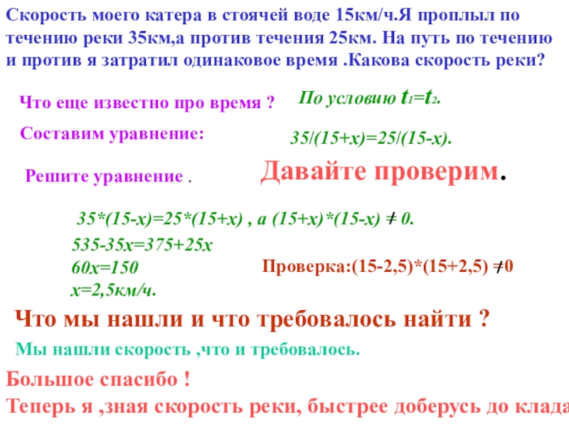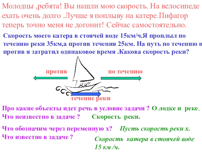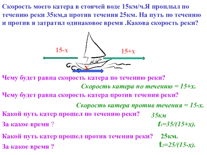 Скорость моего катера в стоячей воде 15км/ч.Я проплыл по