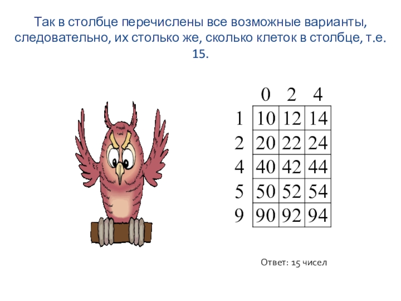 Слайд 6Так в столбце перечислены все возможные варианты, следовательно, их столько же,