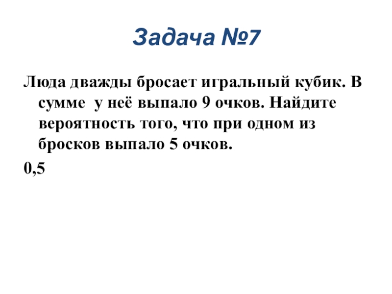 что в сумме выпадет 7 очков. Результат округлите до сотых.