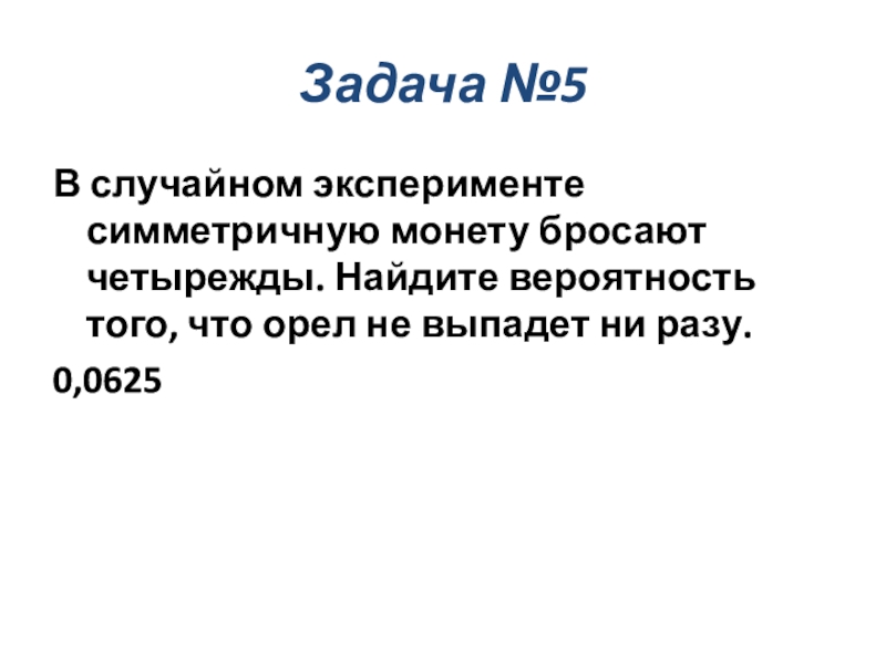 В случайном эксперименте симметричную монету бросают четырежды. Найдите вероятность