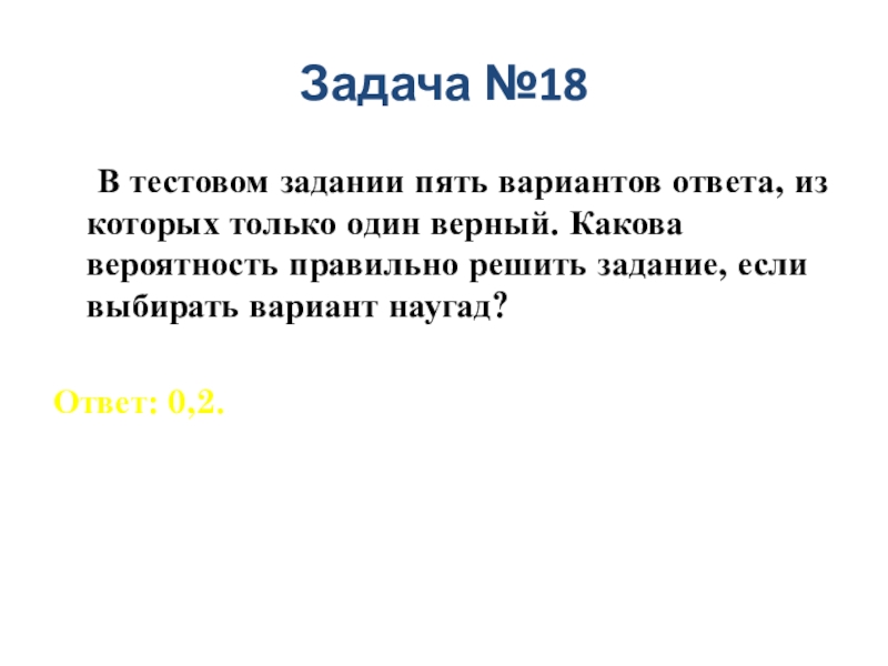 верный. Какова вероятность правильно решить задание, если выбирать вариант наугад?