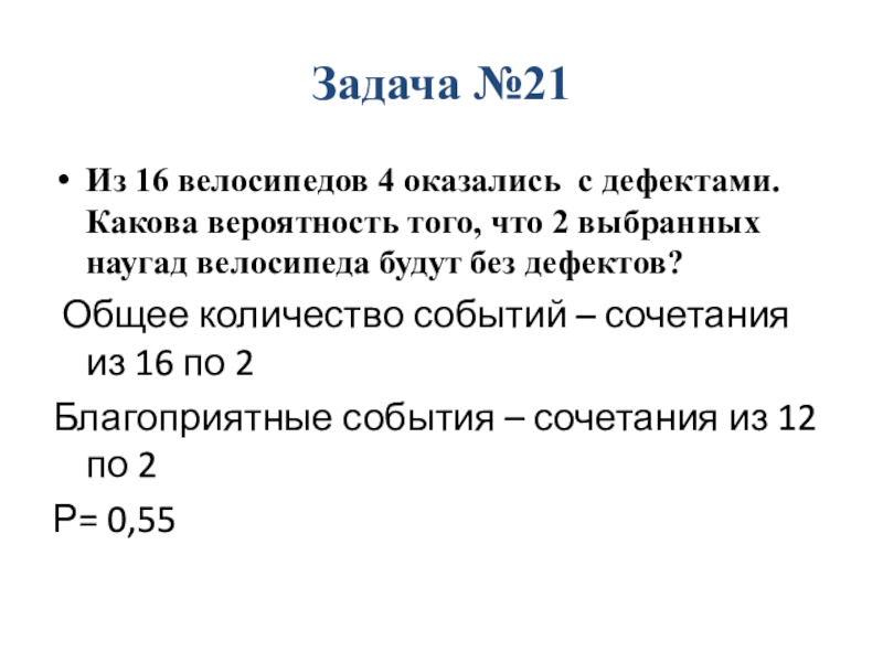 Из 16 велосипедов 4 оказались с дефектами. Какова вероятность того,