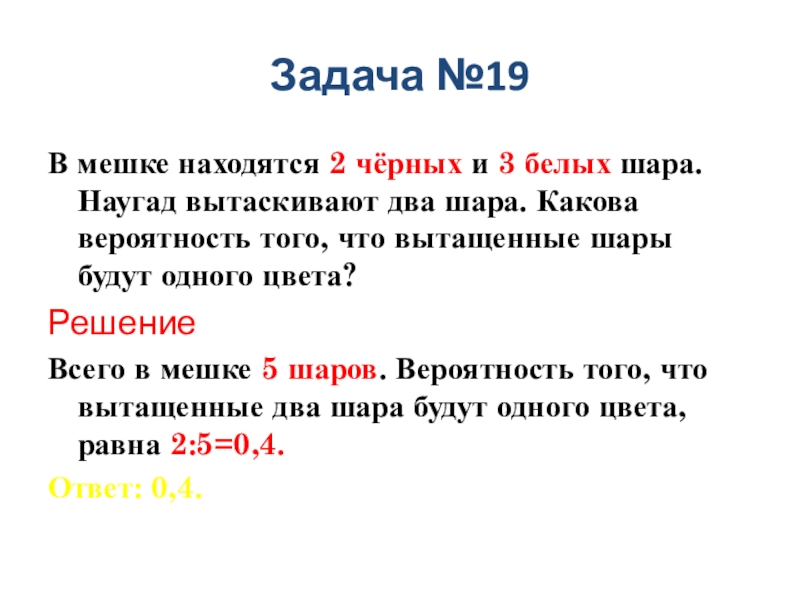 В мешке находятся 2 чёрных и 3 белых шара. Наугад