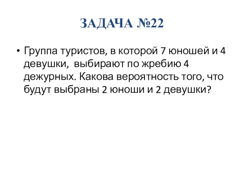 Группа туристов, в которой 7 юношей и 4 девушки, выбирают