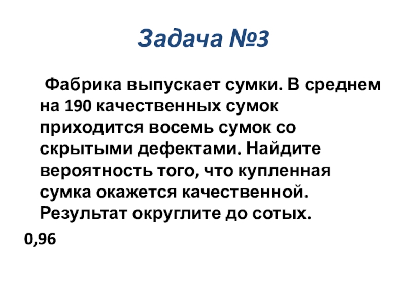Фабрика выпускает сумки. В среднем на 190 качественных сумок приходится