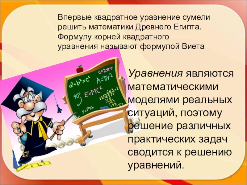Уравнения являются математическими моделями реальных ситуаций, поэтому решение различных практических задач сводится к решению уравнений.