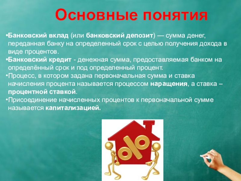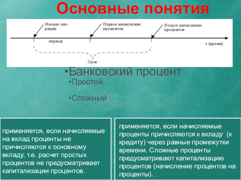 применяется, если начисляемые проценты причисляются к вкладу (к кредиту) через равные промежутки времени. Сложные проценты предусматривают капитализацию процентов (начисление процентов на проценты).