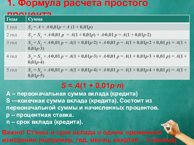 1. Формула расчета простого процента