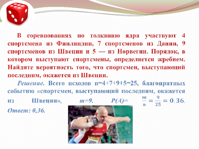 Презентация, доклад по математике Формула классической вероятности