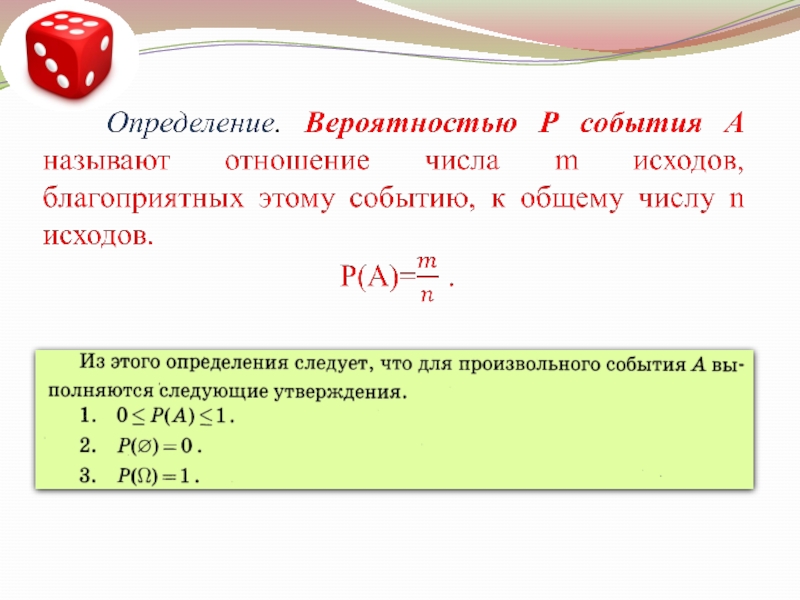 Презентация по математике Формула классической вероятности Алгебра