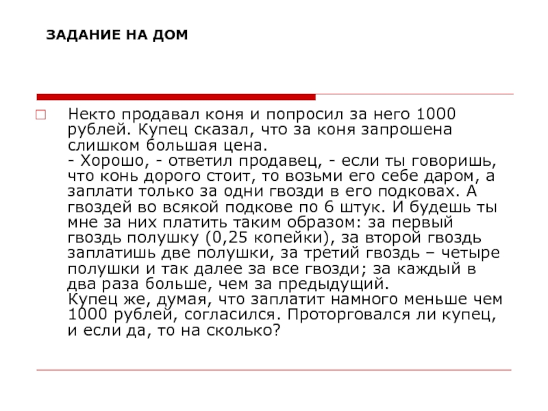 Представьте себе, что вы стоите перед дилеммой, либо получить 100 тыс. долларов прямо сейчас, либо в течении 28 дней получать монетку в 1 цент, который ежедневно удваивается. Чтобы вы предпочли?