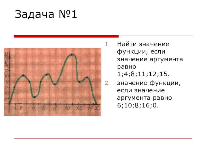 Задача №1Найти значение функции, если значение аргумента равно 1;4;8;11;12;15.значение функции, если значение аргумента равно 6;10;8;16;0.