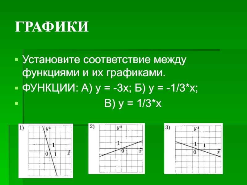 КОЭФФИЦИЕНТЫ: 1) k<0, b<0; 2) k>0, b>0; 3) k<0, b>0