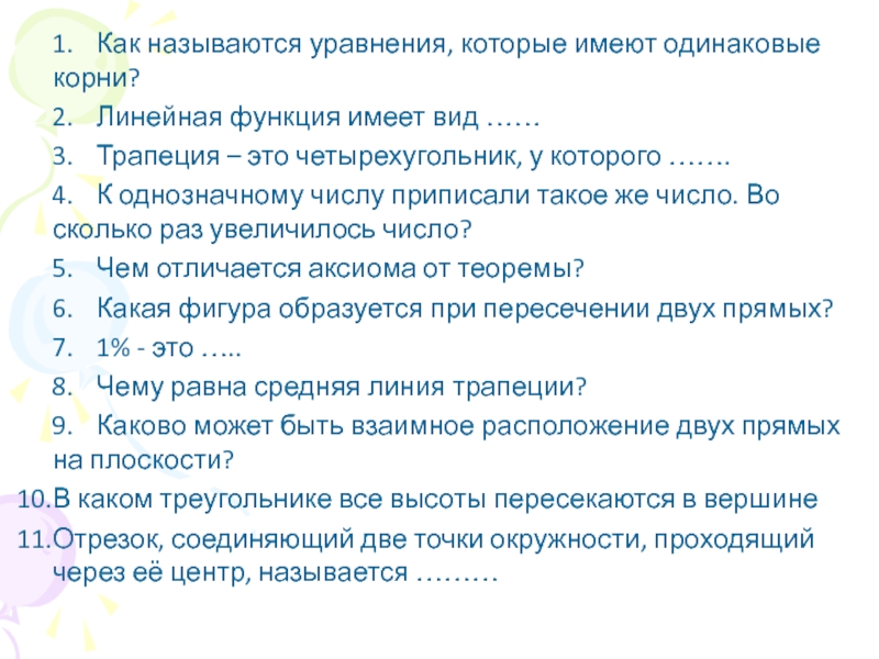 Слайд 191. Как называются уравнения, которые имеют одинаковые корни?