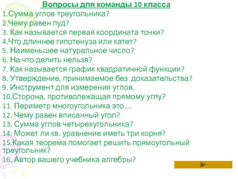9. Один из острых углов прямоугольного треугольника равен 50?. Чему равен второй угол?