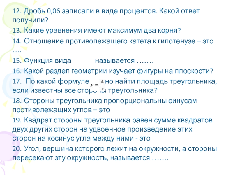 Слайд 2012. Дробь 0,06 записали в виде процентов. Какой ответ получили?