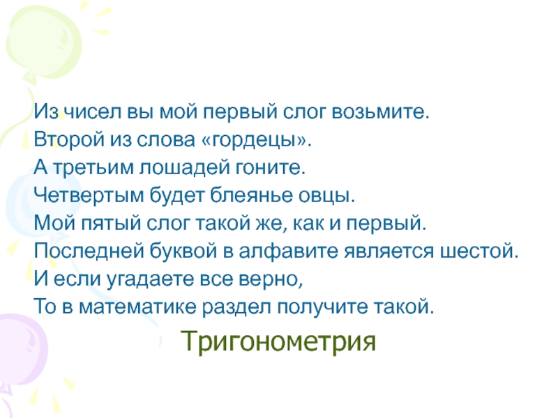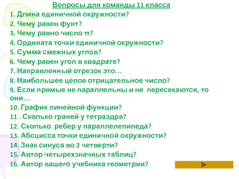 14. Отношение противолежащего катета к гипотенузе – это ….