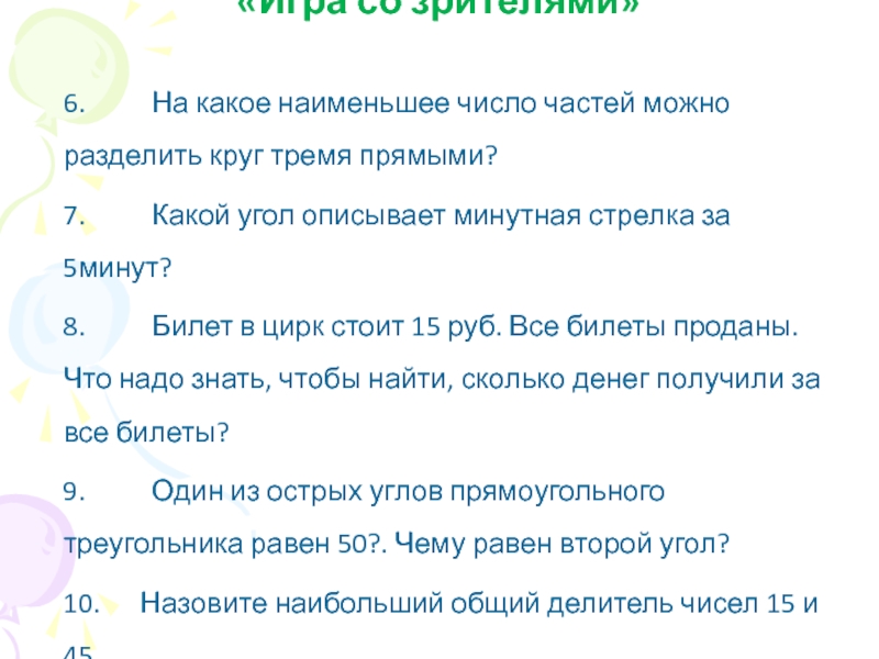 10. Назовите наибольший общий делитель чисел 15 и 45.
