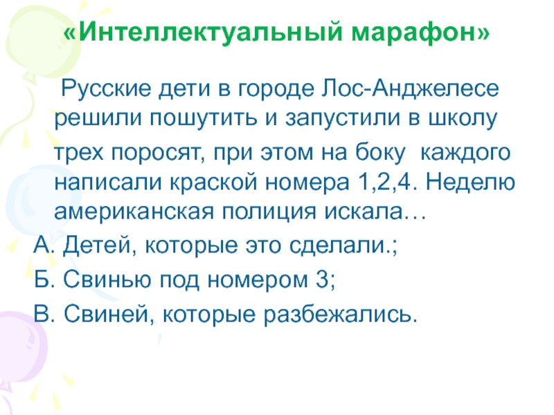 трех поросят, при этом на боку каждого написали краской номера 1,2,4. Неделю американская полиция искала…