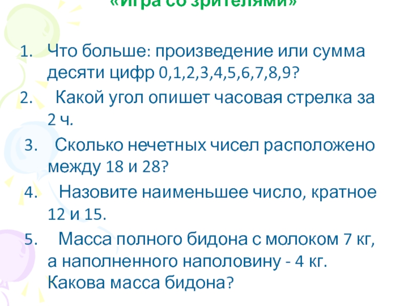 5. Масса полного бидона с молоком 7 кг, а наполненного наполовину - 4 кг. Какова масса бидона?