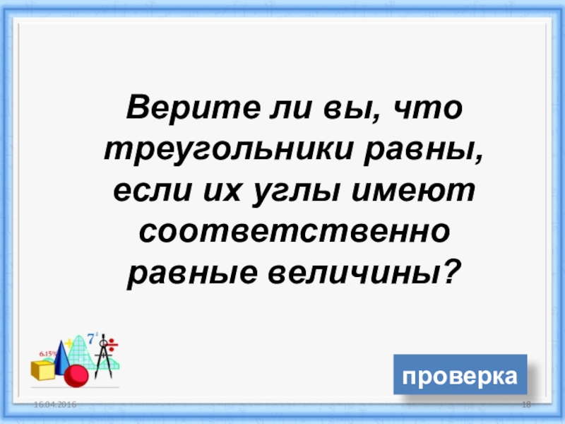 Эти треугольники равны по стороне и двум прилежащим к ней углам!