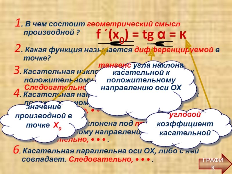 тангенс угла наклона касательной к положительному направлению оси ОХ