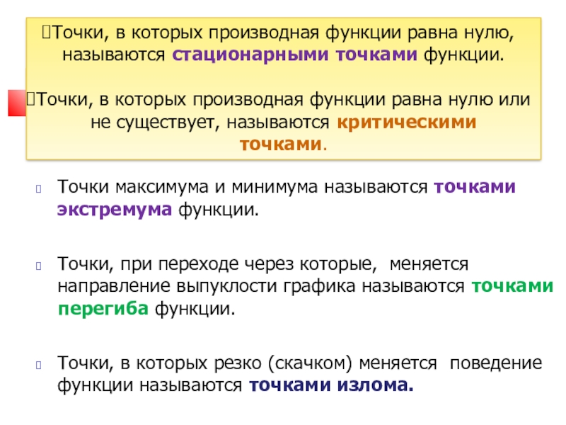 Точки, в которых резко (скачком) меняется поведение функции называются точками излома.