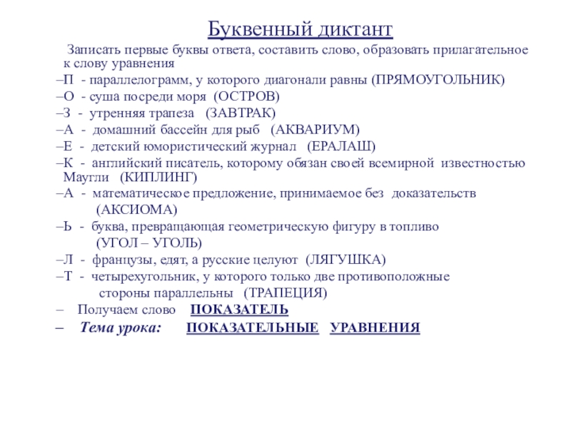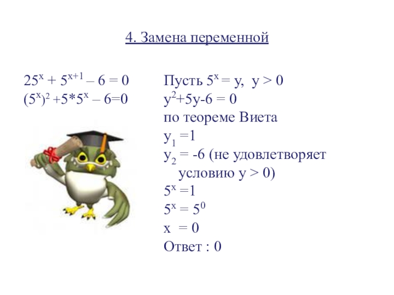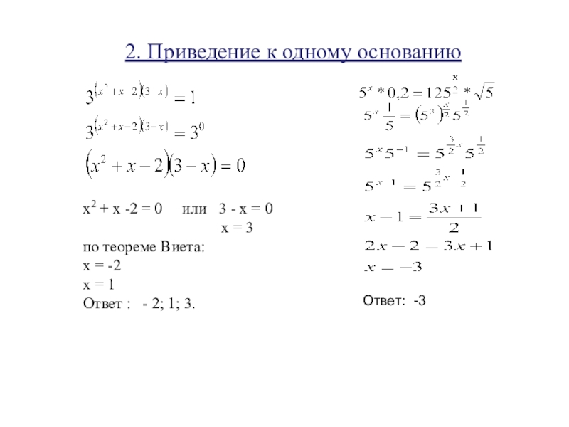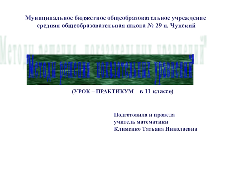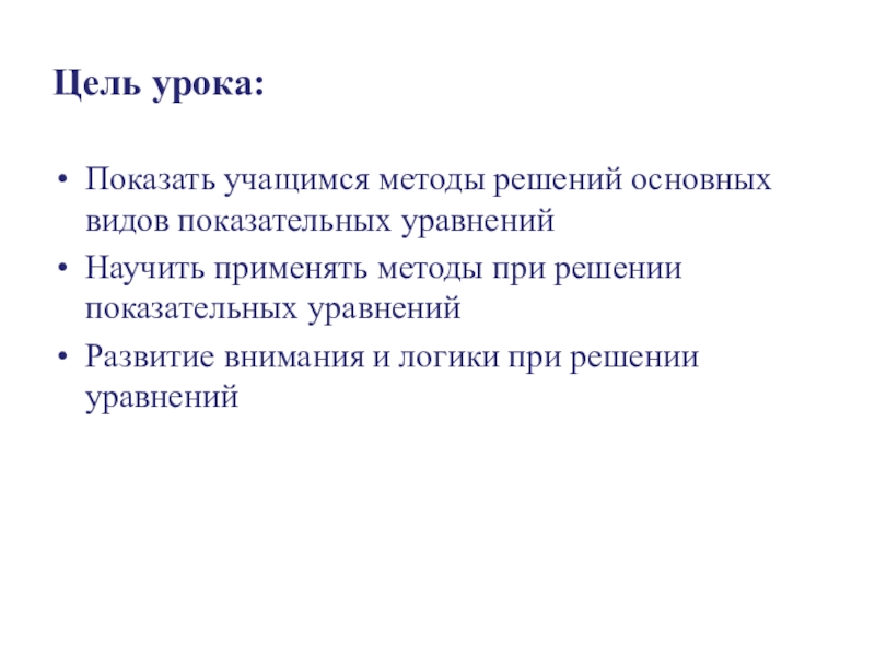 "М е т о д ы р е ш е н и я п о к а з а т е л ь н ы х у р а в н е н и й"