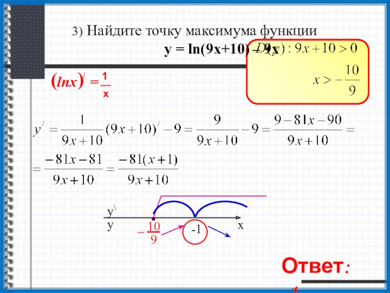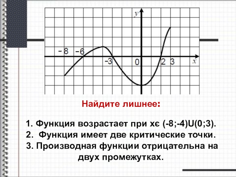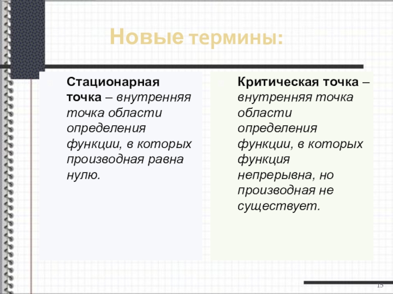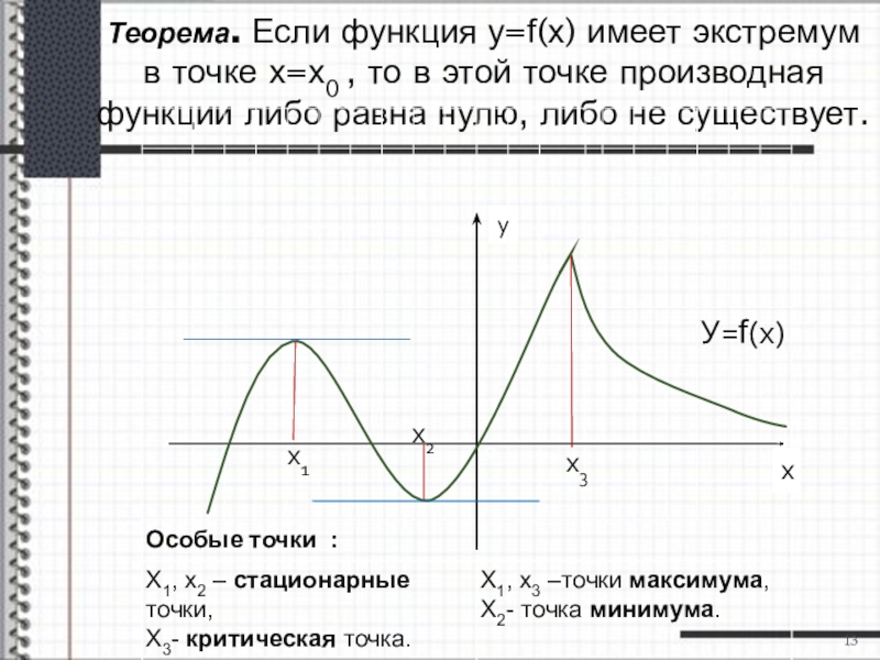 Критическая точка – внутренняя точка области определения функции, в которых функция непрерывна, но производная не существует.