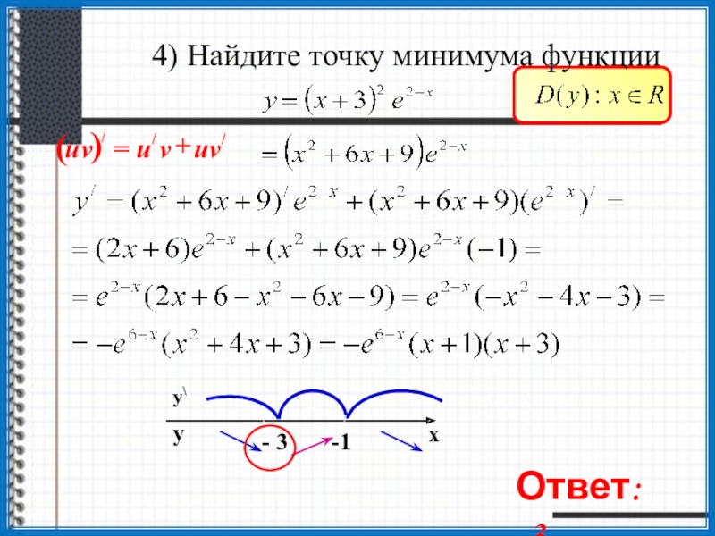 2) y / = 3x2 – 48 = 3(x2 – 16) = 3(x – 4)(x + 4)