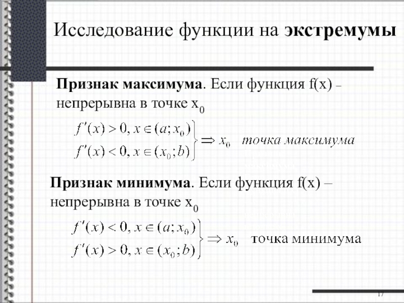 Признак максимума. Если функция f(x) – непрерывна в точке х0