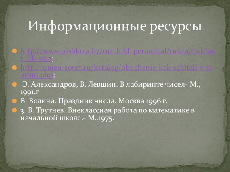 Это сайт презентаций, где можно хранить и обмениваться своими презентациями, докладами, проектами, шаблонами в формате PowerPoint с другими пользователями. Мы помогаем школьникам, студентам, учителям, преподавателям хранить и обмениваться учебными материалами.