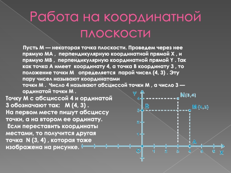 Если переставить координаты местами, то получится другая точка N (3, 4) , которая тоже изображена на рисунке.