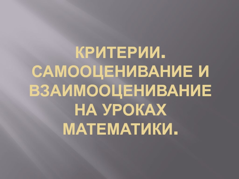 Слайд 1Критерии. Самооценивание и взаимооценивание на уроках математики.