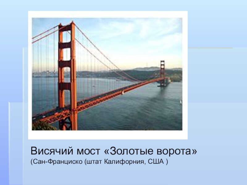 Слайд 31Висячий мост «Золотые ворота» (Сан-Франциско (штат Калифорния, США )