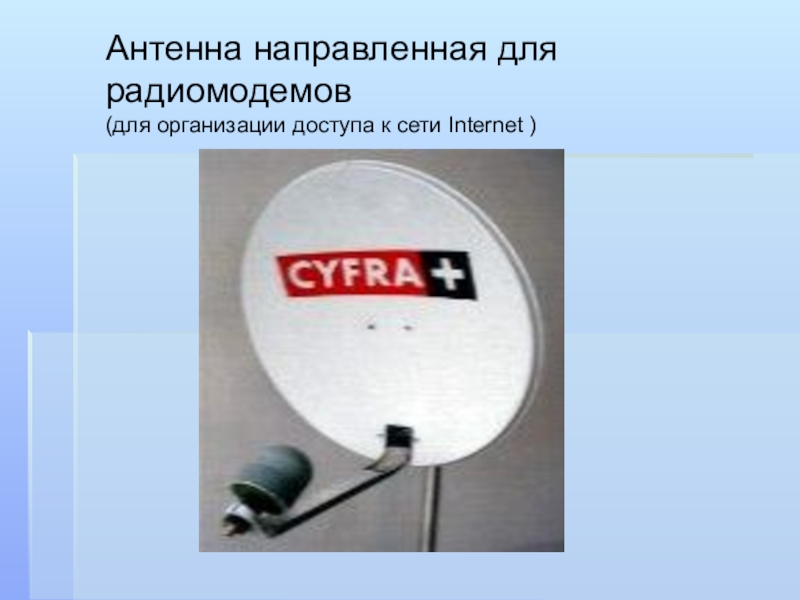 Слайд 17Антенна направленная для радиомодемов (для организации доступа к сети Internet )