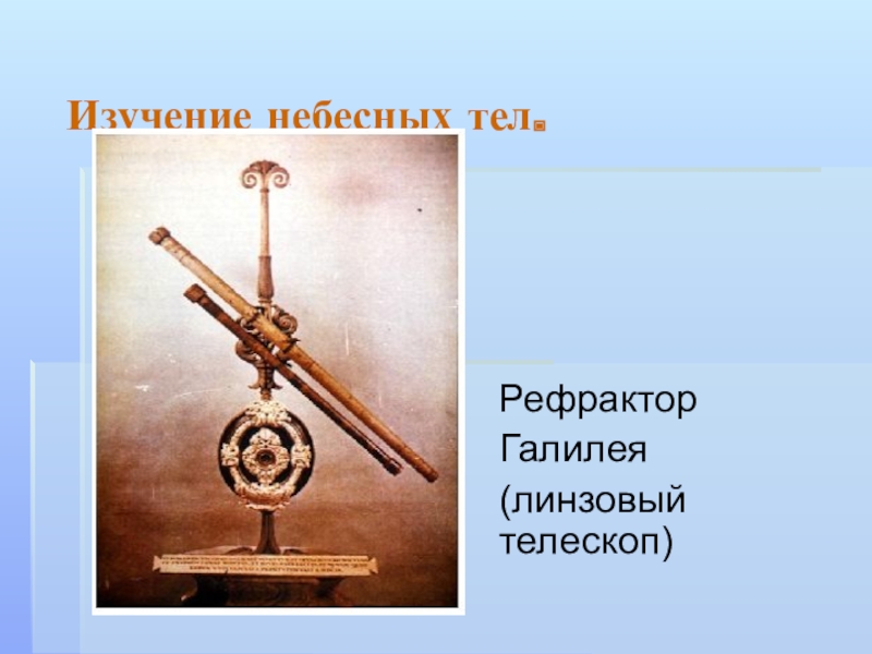 Изучение небесных тел.Рефрактор Галилея (линзовый телескоп)