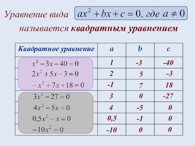 Решение полных квадратных уравнений-квадратное уравнение общего вида