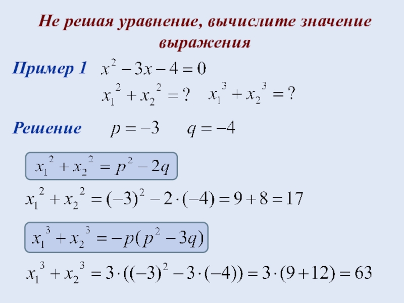 Пример 3Не решая уравнение, вычислите значение выражения Решение