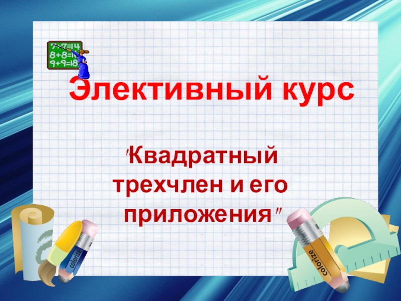 Презентация, доклад по математике Квадратный трехчлен и его приложения (элективный курс).