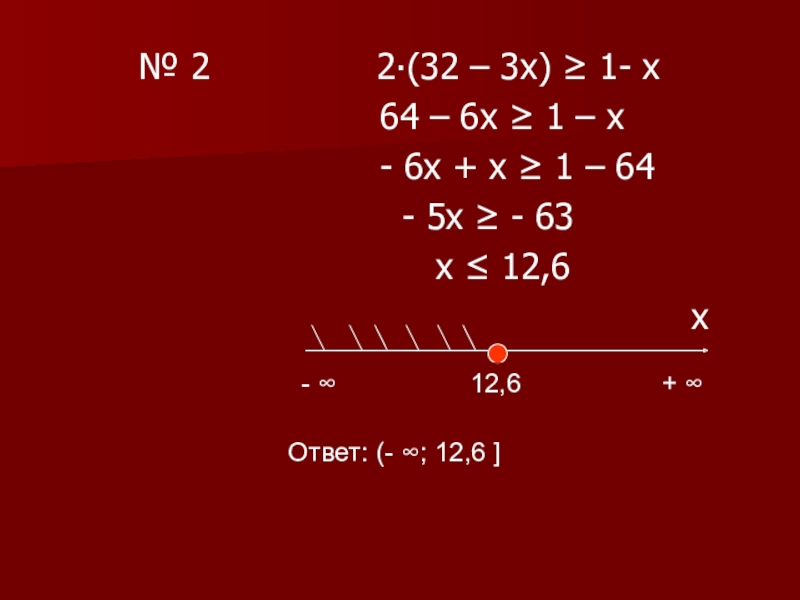 № 2 2∙(32 – 3х) ≥ 1- х