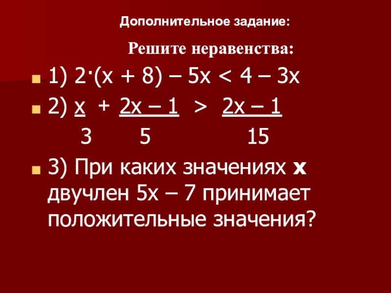 № 4 2∙(0,1х – 1) < 7 – 0,8х
