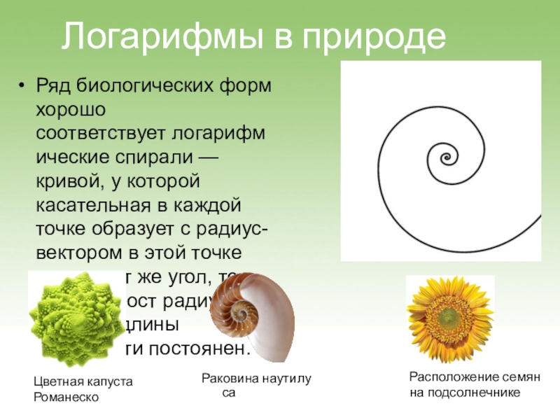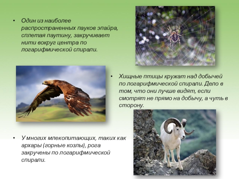 У многих млекопитающих, таких как архары (горные козлы), рога закручены по логарифмической спирали.