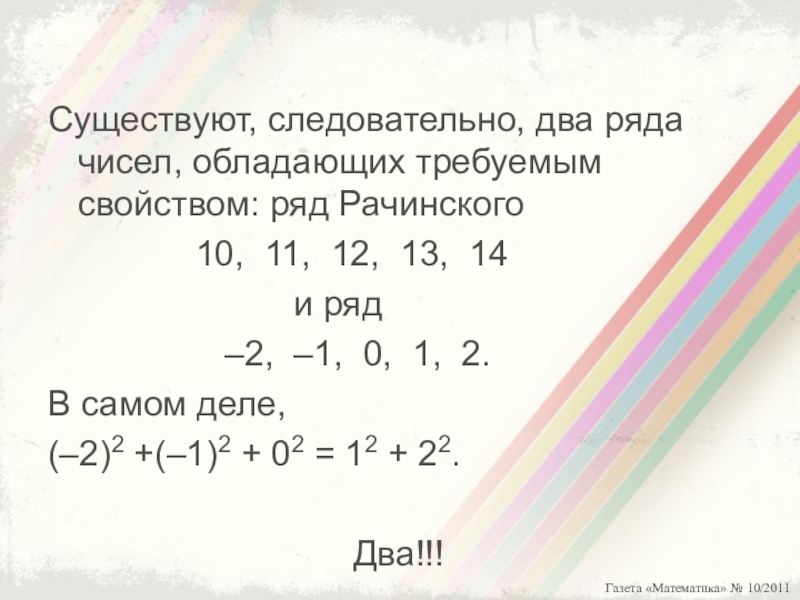 Существуют, следовательно, два ряда чисел, обладающих требуемым свойством: ряд Рачинского