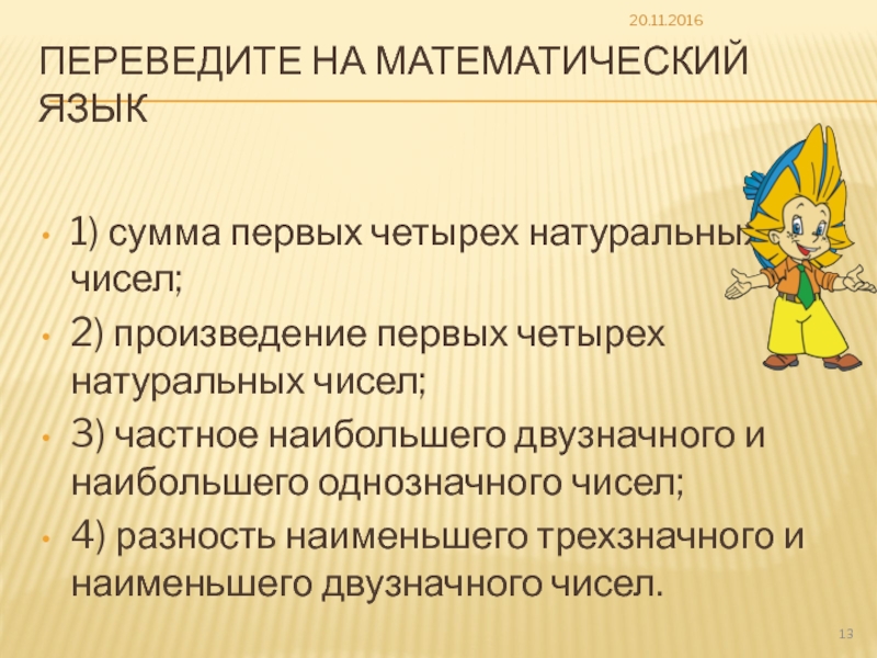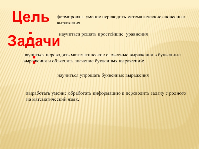 выработать умение обработать информацию и переводить задачу с родного на математический язык.