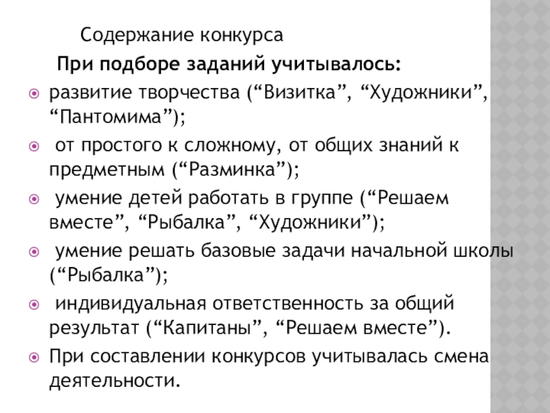Слайд 3 Содержание конкурса