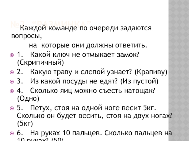 Слайд 7№2. “РАЗМИНКА”.
