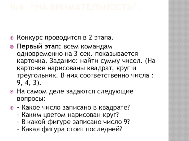 №6. “НА ВНИМАТЕЛЬНОСТЬ”.